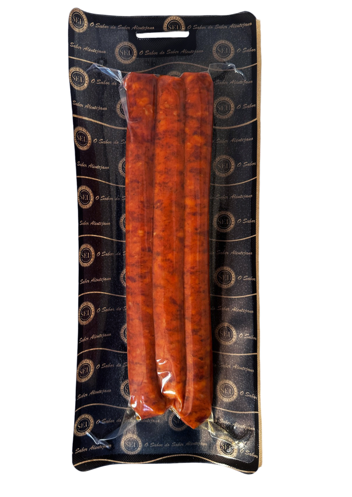 E120. Enchido em tripa artificial. Fumado com lenha de azinho.