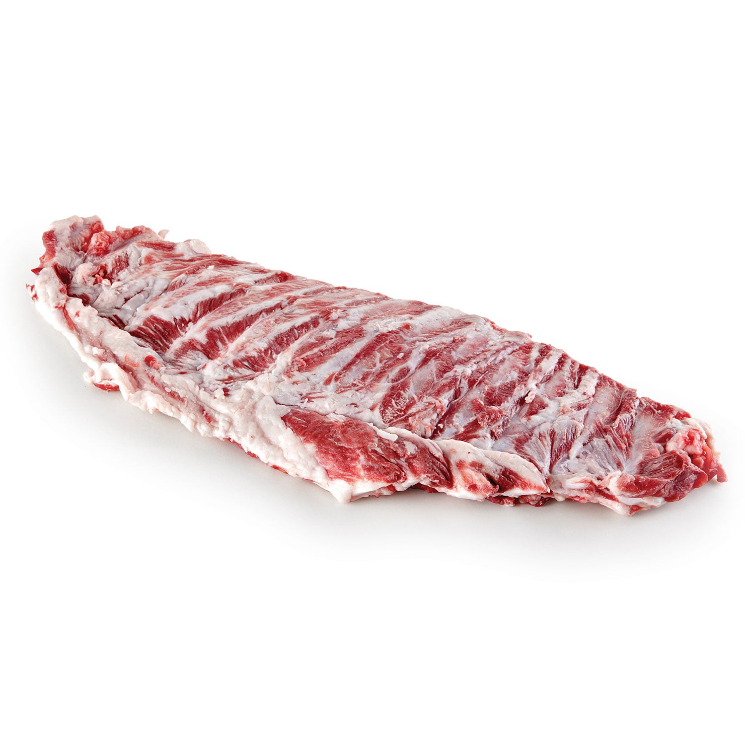 Entrecosto Rapado Porco Preto SEL: Peça que, separada do toucinho e da camada muscular adjacente, engloba a região correspondente à parte das costelas, separadas da lombada, e do esterno, com menor quantidade de carne (Origem: UE).