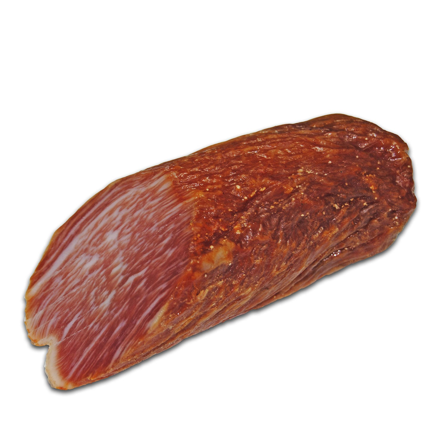 Obtido a partir carne de suíno, sujeitos a um processo de cura em câmaras de humidade e temperatura controladas seguido de fumagem a baixas temperaturas.